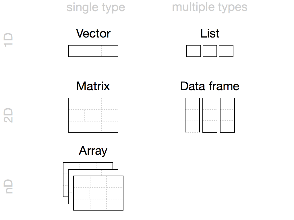 - Finally, we will examine data.frames, a widely-used data structure for organizing and manipulating tabular data. You will learn how to create, access, and manipulate data.frames, and understand their advantages over other data structures for data analysis tasks.