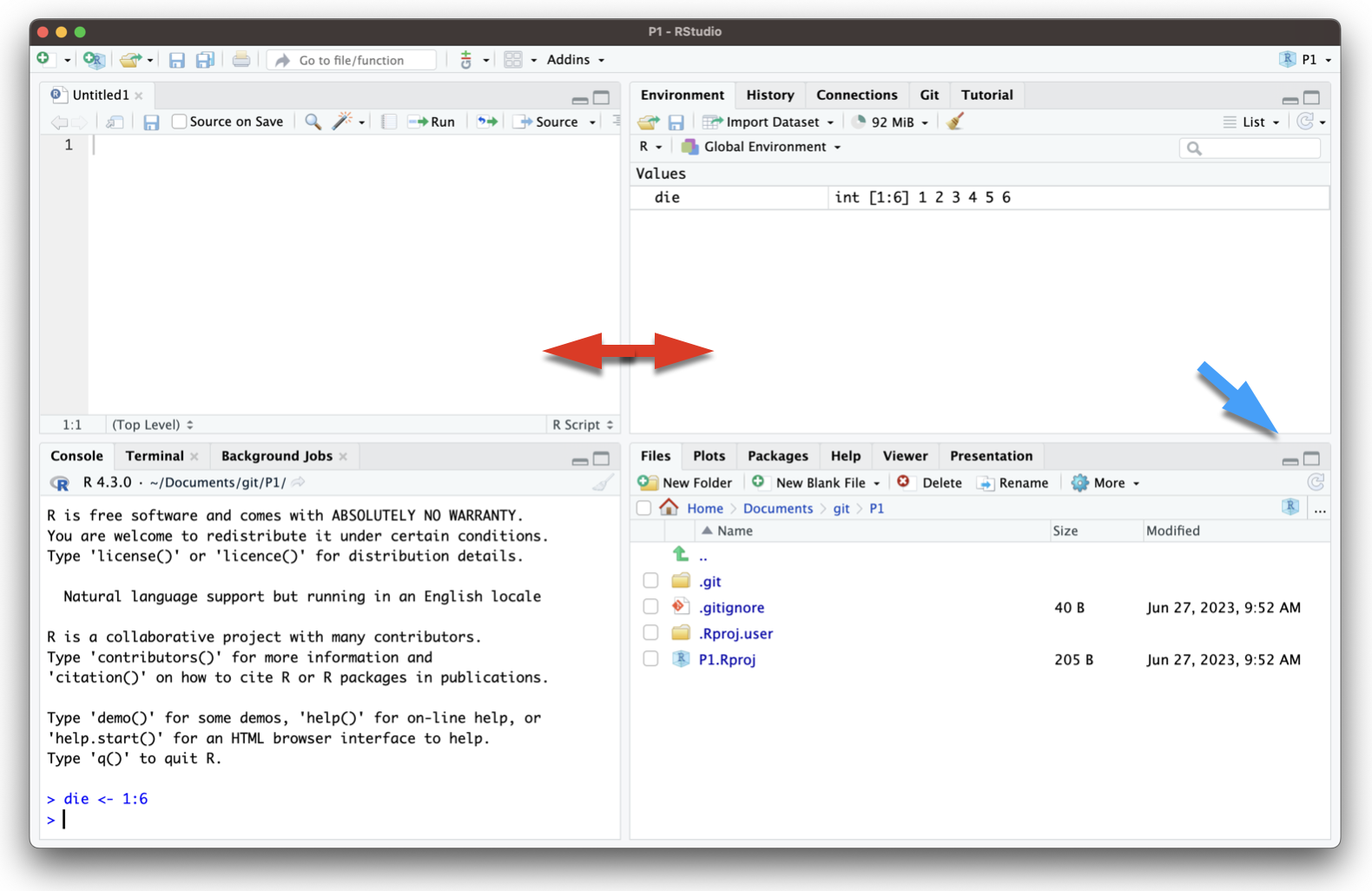 You can customize the layout of RStudio to suit your preferences. To do so, go to Tools > Global Options > Appearance. Here, you can change the theme, font size, and panel layout. You can also resize the panels as needed to gain screen real estate (see Figure 2.2).